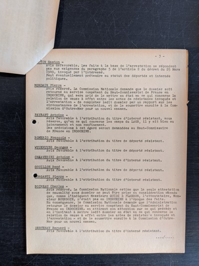 Sub collection: Commission nationale des déportés et internés politiques ou résistants d'Indochine pour la guerre 1939 - 1945